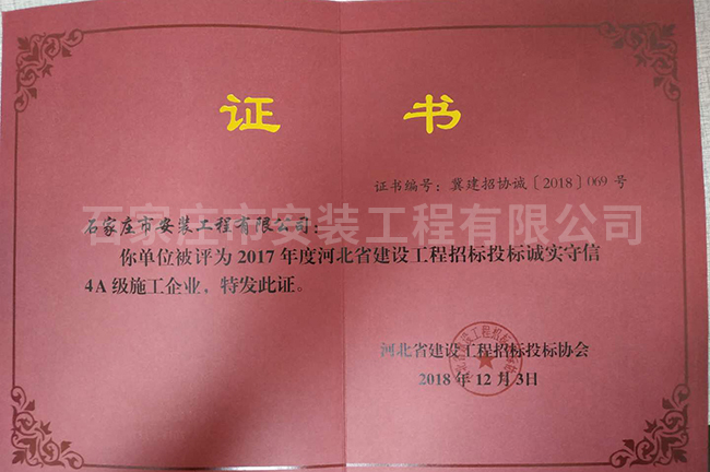 2017年度河北省建設(shè)工程招標(biāo)投標(biāo)誠實(shí)守信4A級(jí)施工企業(yè)